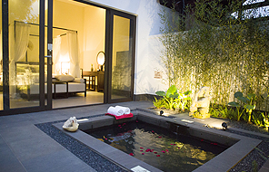 豪華別墅以東南亞風(fēng)格為建筑格調(diào),各棟別墅配有獨立的SPA溫泉池,綠樹掩映。內(nèi)有高挑寬敞的廳堂、亮麗多彩的燈飾、典雅清明的藤木家具、愜意的臥室、造型華貴,頗有豪邁典雅的氣派。