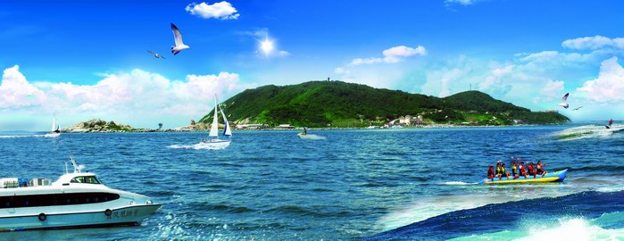 位于電白縣南部沿海,離博賀港約8海里,船程30分鐘,快艇20分鐘。該島附近海域水深6—12米,能見度可達(dá)8米,是一個美麗而神秘的潛水旅游圣地。同時島上的植被覆蓋率也居廣東省海島之冠。目前游樂項目有:沖浪摩托艇、游艇、香蕉船、海面拖曳傘、海泳、潛水、釣魚、沙灘跑車等項目。島上住宿、餐飲、娛樂、休閑設(shè)施齊全,成為廣東省最有動感的海島休閑度假旅游區(qū),F(xiàn)為國家AAAA級旅游區(qū)。